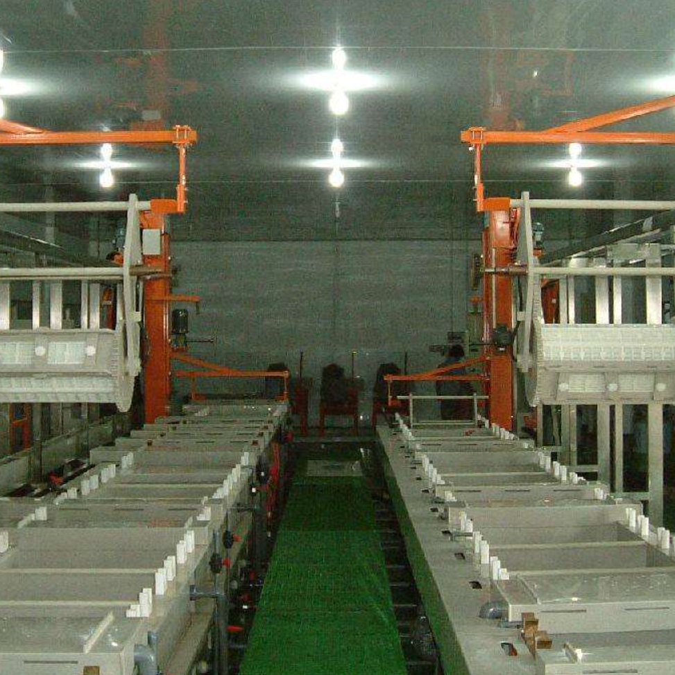 967彩票APP电镀处理过程中所用的设备主要有各类固定槽、滚镀槽、挂具、吊篮等。镀后处理是对零件进行抛光、出光、钝化、着色、干燥、封闭、去氢等工作,龙门式挂镀生产线,根据需要选用其中一种或数种工序使零件符合质量要求。镀后处理常用设备主要有磨、抛光机,各类固定槽。